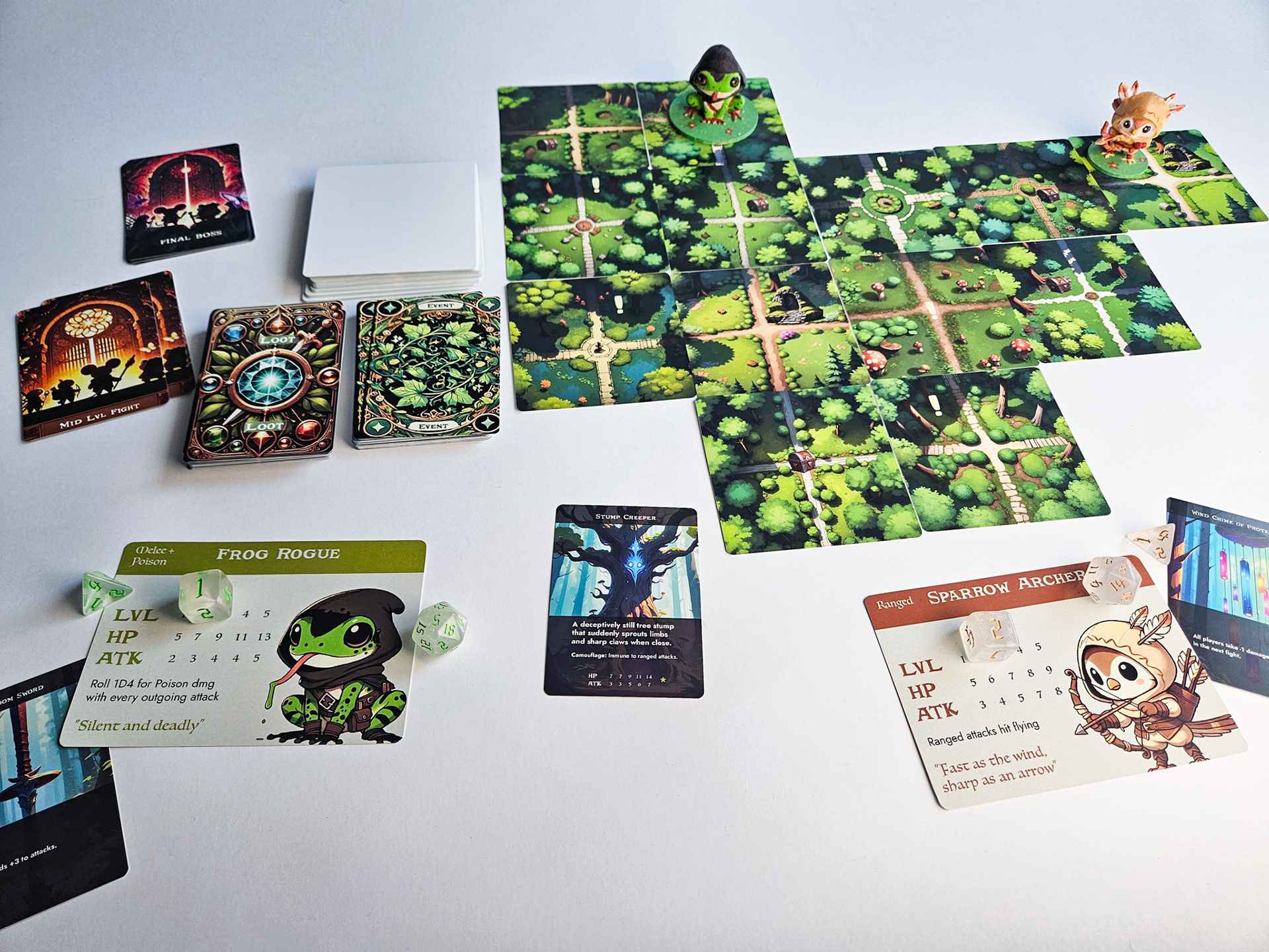 Little Feats is a fast-paced, animal-themed RPG board game that blends strategy, exploration, and adventure. Designed for quick, engaging gameplay, players battle enemies, level up, and navigate a modular tile-based world that changes with every playthrough.